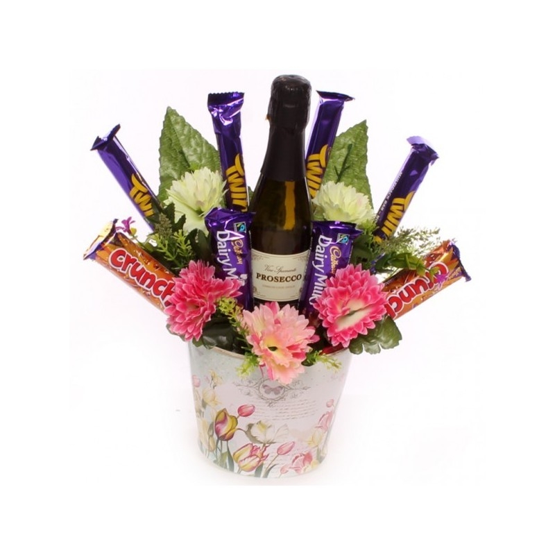 A selection of fresh flowers complete with a single serve prosecco