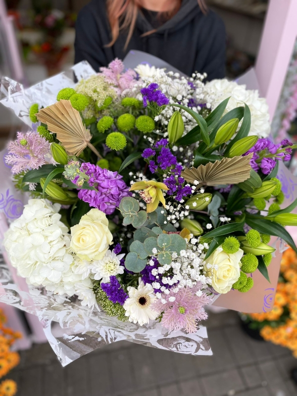 Purple Passion is a beautiful mix of classic whites, greens and purples, this bouquet will vary from the picture but will be created using stunning fresh flowers to impress the recipient