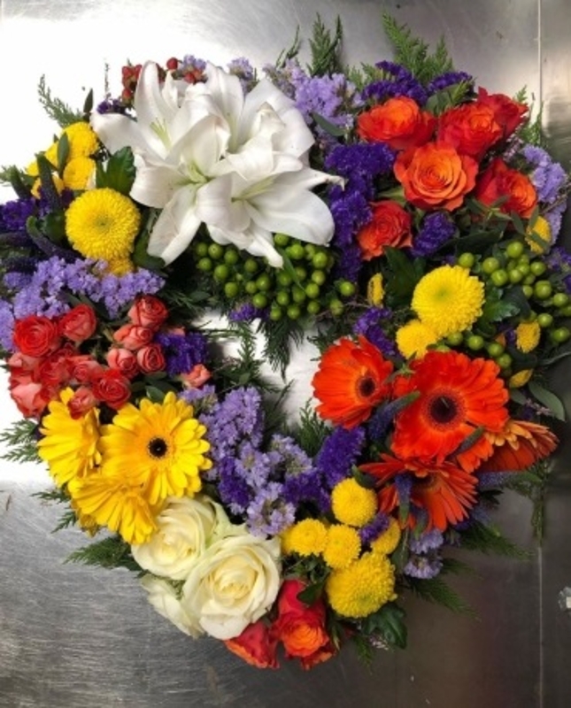 Amandas choice of the beautiful cluster heart chosen for you, it will be created with fresh in-season flowers.